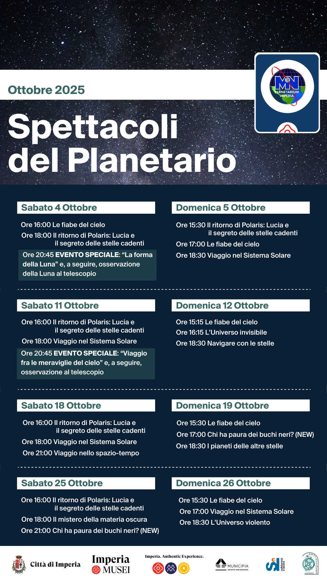 Scopri TuttiProgrammazione degli spettacoli al Planetario (Ottobre 2025)